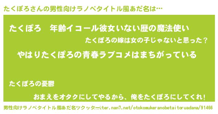| 意味不明あだ名 | 『たくぽろフォーエバー』 |