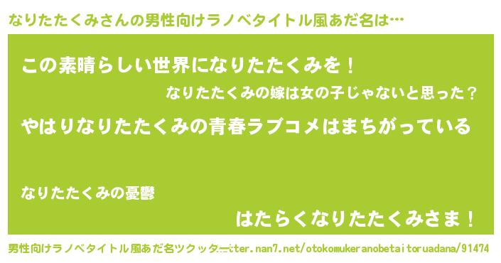 | ファンタジー風あだ名 | 『エターナルナリタタクミー』 |