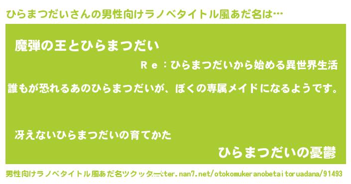 | 女子向けラノベタイトル風あだ名 | 『異世界でカフェひらまつだいを開店しました。』 |