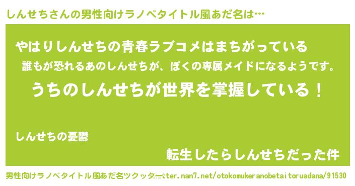 | 胡散臭い通販商品みたいなあだ名 | 『運命の人と巡り会える高級そうな皿…その名も「しんせち」』 |