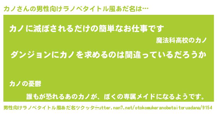 | 女子向けラノベタイトル風あだ名 | 『カノは平凡を望む』『カノの契約王妃』 |