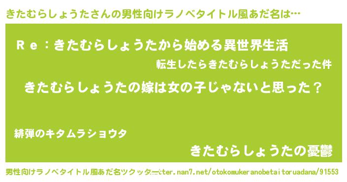 きたむらしょうたさんの男性向けラノベタイトル風あだ名をツクッター!