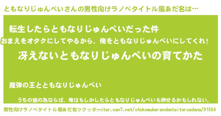 | 女子向けラノベタイトル風あだ名 | 『男装ともなりじゅんぺいの憂鬱な任務』 |
