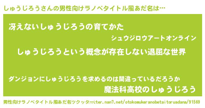 | ヘコむあだ名 | 『しゅうじろう(笑)』『しゅにゅー』 |