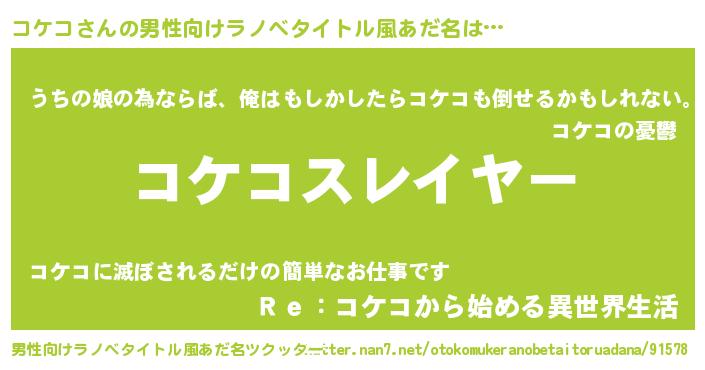 | ファンタジー風あだ名 | 『ユリコケヴァット』『ゼコケトゥ』 |
