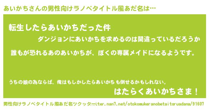 | 胡散臭い通販商品みたいなあだ名 | 『来世でも幸せになれる健康食品…その名も「あいかち」』 |