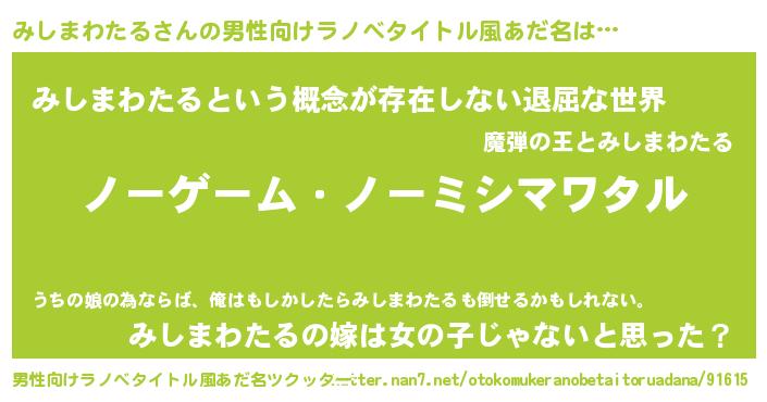 | 肩書あだ名 | 『みしまわたる助手』『みしまわたる団長』 |