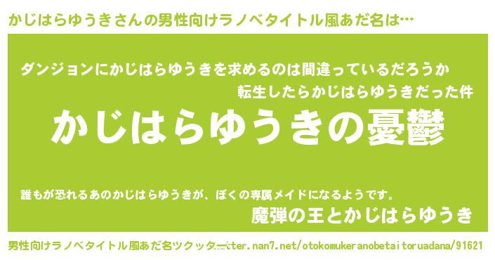 | 胡散臭い通販商品みたいなあだ名 | 『必ず成功する霊験あらたかなお札…その名も「かじはらゆうき」』 |
