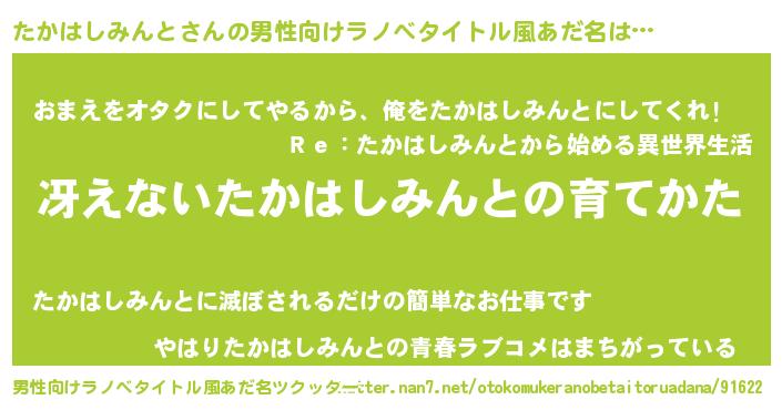 | 女子向けラノベタイトル風あだ名 | 『シンデレラたかはしみんと家の靴箱館』 |