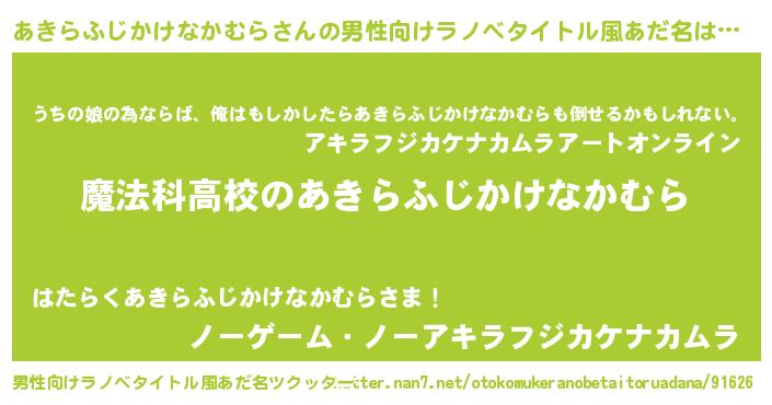 | 意味不明あだ名 | 『自称あきらふじかけなかむら』 |