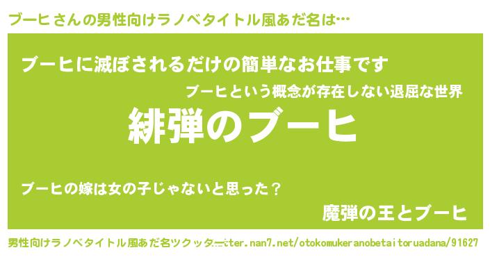 | ヘコむあだ名 | 『ブーヒ(震え声)』『ブー太郎』 |