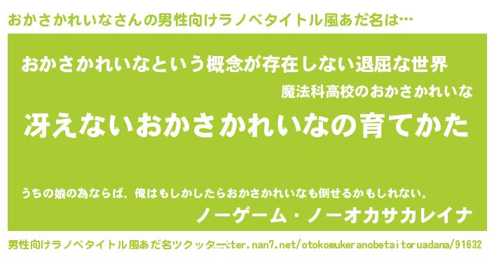 | 意味不明あだ名 | 『永久保存おかさかれいな』 |