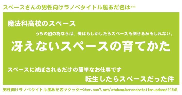 | ヒーロー風カッコイイあだ名 | 『最強戦士スペース』『愛の使者スペース』 |