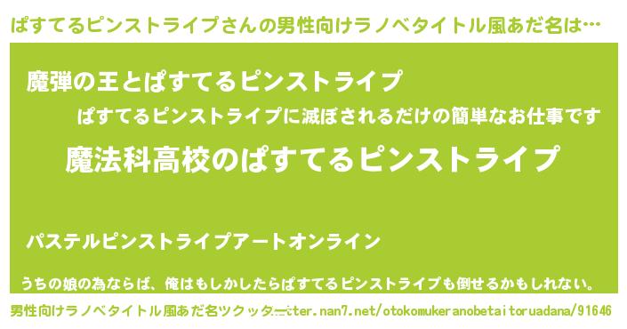 | 女子向けラノベタイトル風あだ名 | 『ぱすてるピンストライプなんてお断りですっ。』 |