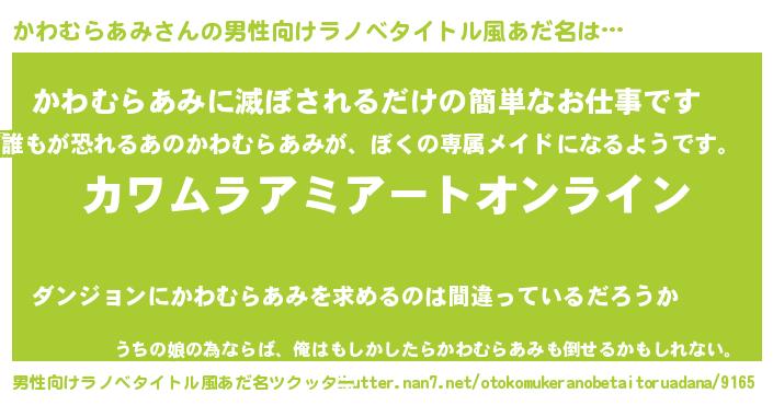 | 女子向けラノベタイトル風あだ名 | 『かわむらあみ姫と円卓の騎士』 |