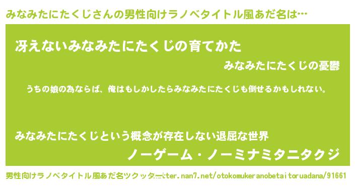 みなみたにたくじさんの男性向けラノベタイトル風あだ名をツクッター!