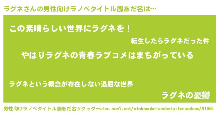 | 女子向けラノベタイトル風あだ名 | 『ラグネ伯爵の花嫁』 |