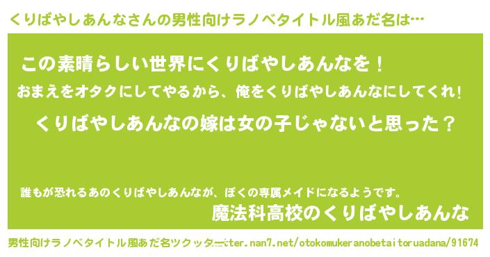 | 女子向けラノベタイトル風あだ名 | 『くりばやしあんなの卵を拾いまして』 |