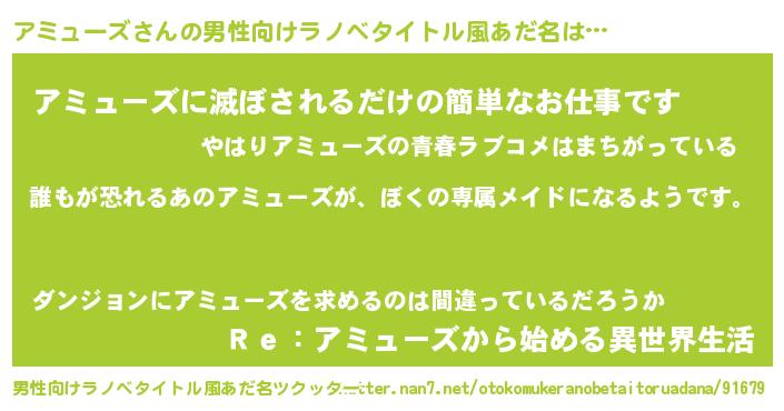 | 女子向けラノベタイトル風あだ名 | 『異世界でカフェアミューズを開店しました。』 |