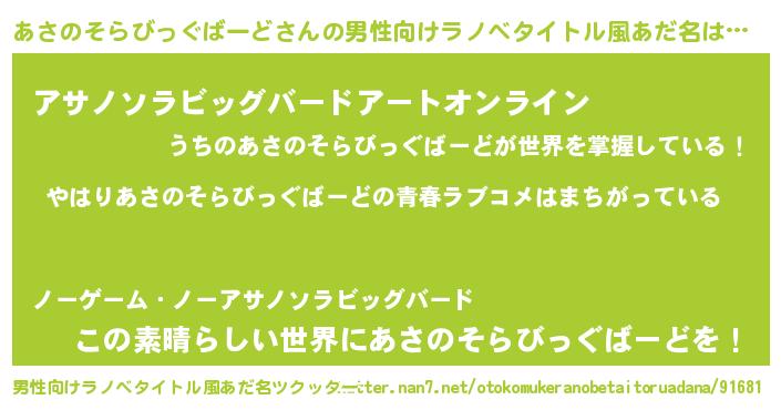 | ファンタジー風あだ名 | 『エターナルアサノソラビッグバードー』 |