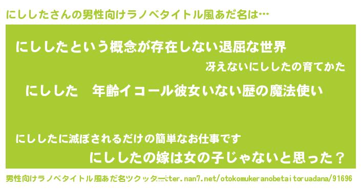 にししたさんの男性向けラノベタイトル風あだ名をツクッター!