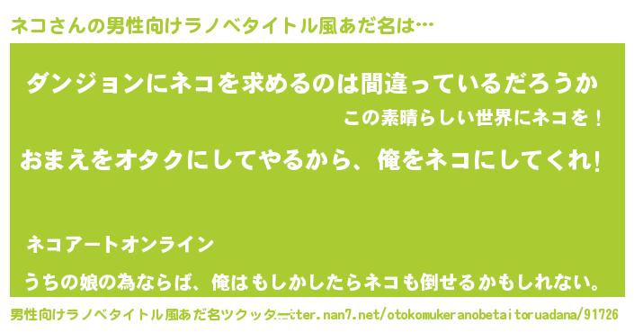| 女子向けラノベタイトル風あだ名 | 『ネコ夫妻のなれそめ』『ネコの婚約者』 |