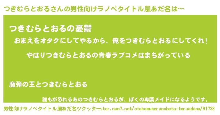 | 女子向けラノベタイトル風あだ名 | 『つきむらとおるの雑貨屋さん』 |