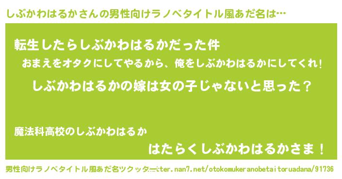 | 意味不明あだ名 | 『とにかく怪しいしぶかわはるか』 |