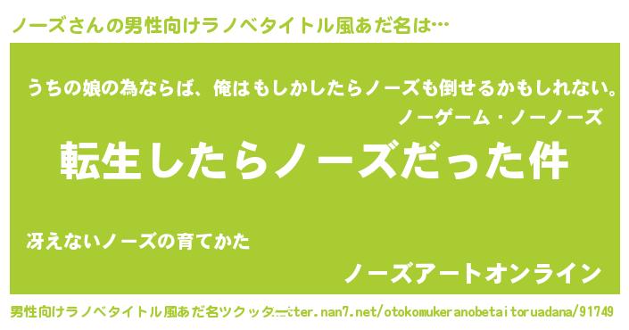 | 胡散臭い通販商品みたいなあだ名 | 『世界が平和になる高級そうな皿…その名も「ノーズ」』 |