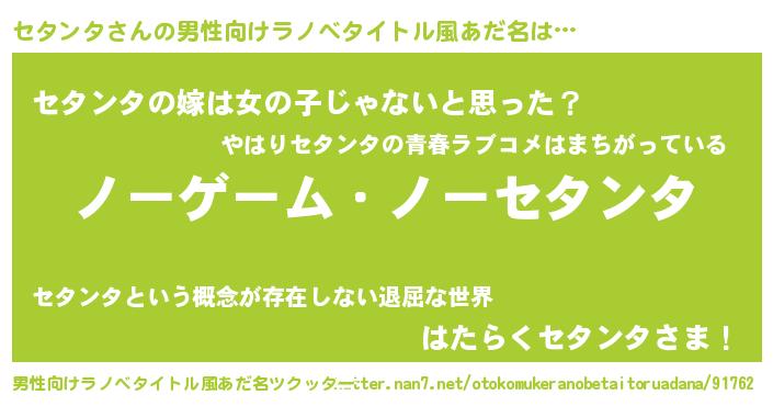 | 女子向けラノベタイトル風あだ名 | 『セタンタ恋絵巻』『セタンタ様がみてる』 |