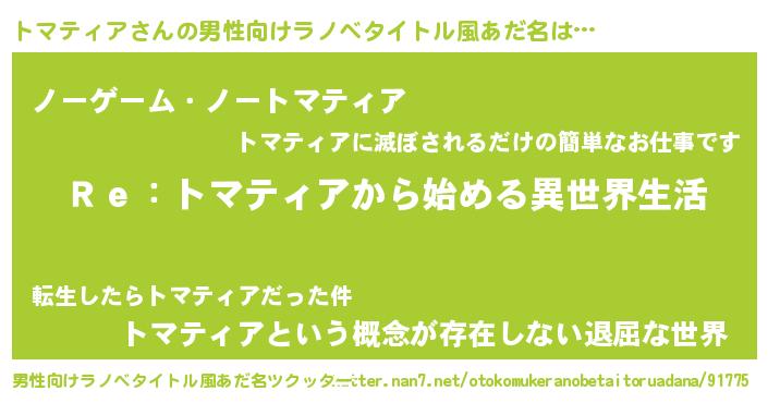 | ヘコむあだ名 | 『トマティア(笑)』『なまこ酢』 |