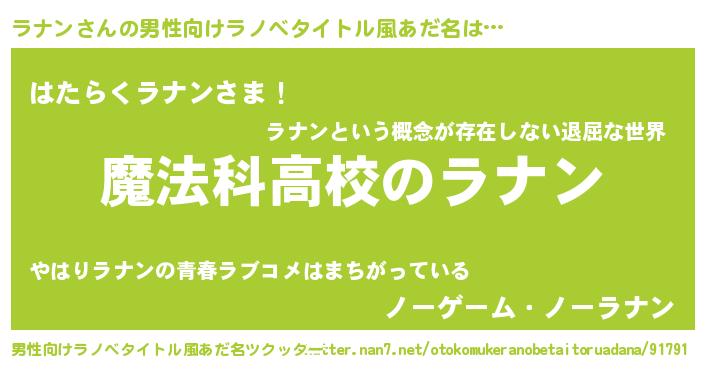 | 意味不明あだ名 | 『自称ラナン』『眠気覚ましガムラナン味』 |