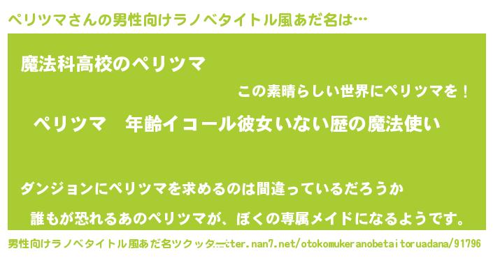 | 女子向けラノベタイトル風あだ名 | 『ペリツマの玉の輿計画!』 |