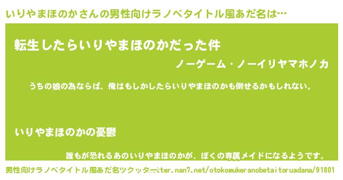 | 胡散臭い通販商品みたいなあだ名 | 『世界が平和になる高級そうな絵画…その名も「いりやまほのか」』 |