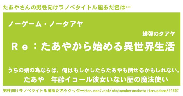 | ヒーロー風カッコイイあだ名 | 『最強戦士タアヤ』『慈愛の使者たあや』 |
