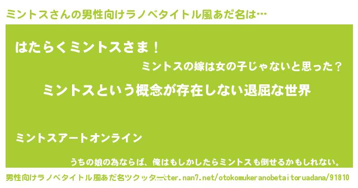| ヒーロー風カッコイイあだ名 | 『ネオミントス』『ウルトラミントスマン』 |