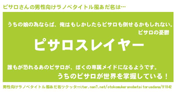 | ヘコむあだ名 | 『牛乳』『ピサふぇ~』『ピサロ(笑)』 |