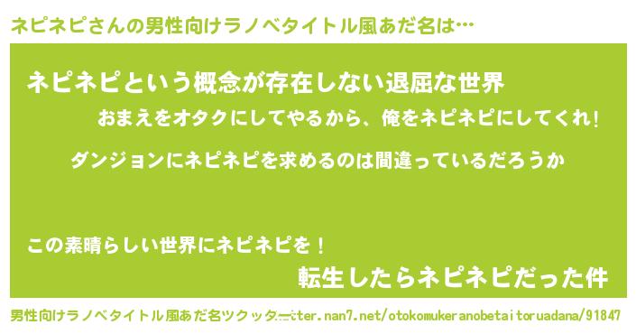 | 女子向けラノベタイトル風あだ名 | 『ネピネピは平凡を望む』 |