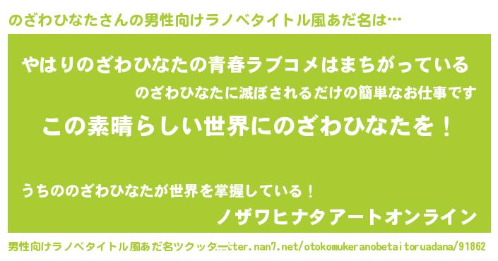 | ヒーロー風カッコイイあだ名 | 『仮面ノザダー』『スーパーノザワヒナタ』 |