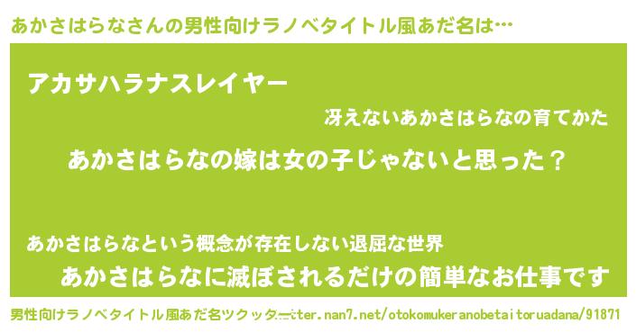 | 女子向けラノベタイトル風あだ名 | 『あかさはらな様がみてる』 |