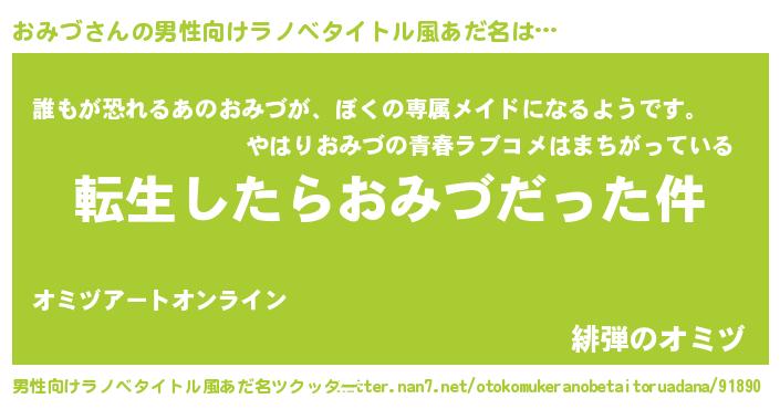 | ヘコむあだ名 | 『おみづ(爆)』『酢こんぶ』『おみを』 |