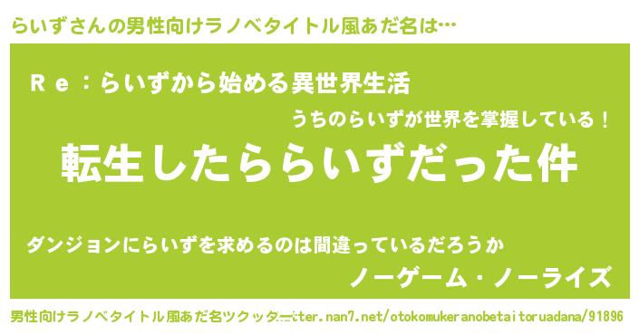 | 肩書あだ名 | 『らいず上級大将』『らいず総統』 |