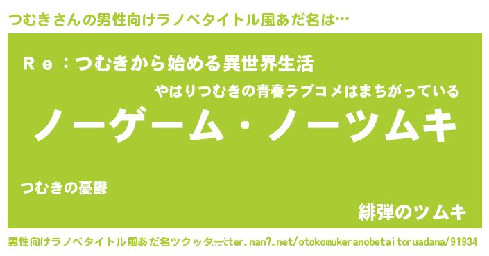 | ヒーロー風カッコイイあだ名 | 『慈愛の使者つむき』『超時空戦士ツムキ』 |