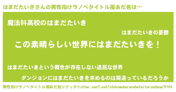 | 意味不明あだ名 | 『住所不定無職はまだたいき(84歳)』 |