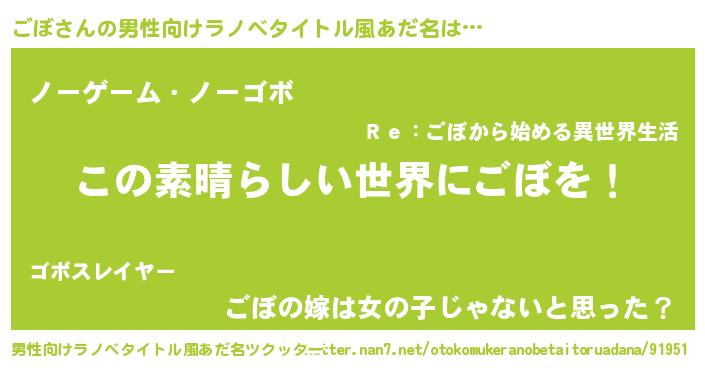 | 女子向けラノベタイトル風あだ名 | 『悪役ごぼに転生したようですが、知った事ではありません』 |