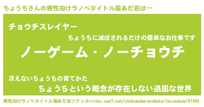 | 女子向けラノベタイトル風あだ名 | 『ちょうち恋絵巻』『ちょうちの契約王妃』 |