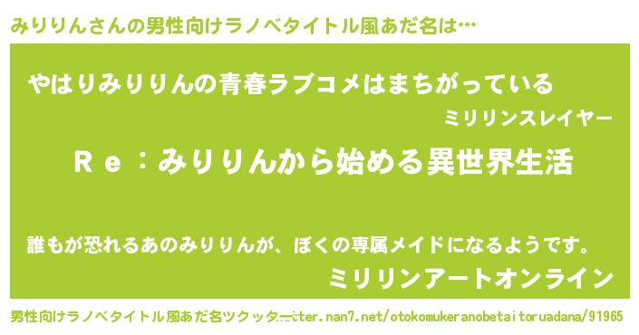 | 女子向けラノベタイトル風あだ名 | 『みりりんストレイドッグス』 |