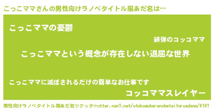 | 女子向けラノベタイトル風あだ名 | 『こっこママの契約王妃』 |