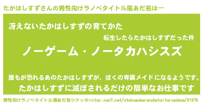 | ヘコむあだ名 | 『たかはしすず(爆)』『たかっちょ』 |