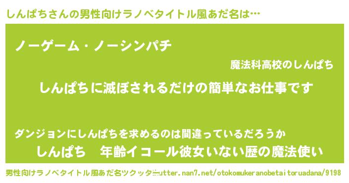 しんぱちさんの男性向けラノベタイトル風あだ名をツクッター!